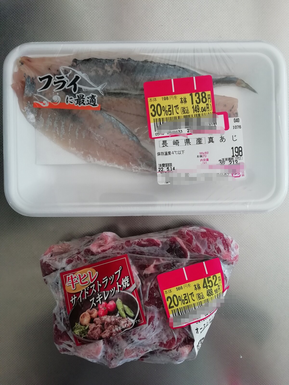 スーパーの値引きシールでゲットしてきた食材がこちら