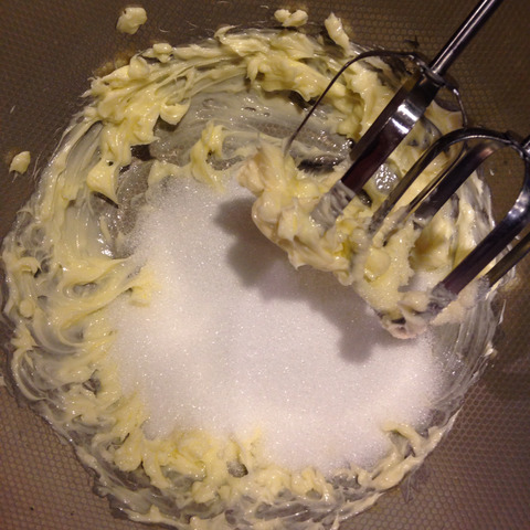ボウルにバタと砂糖を加えよく混ぜる