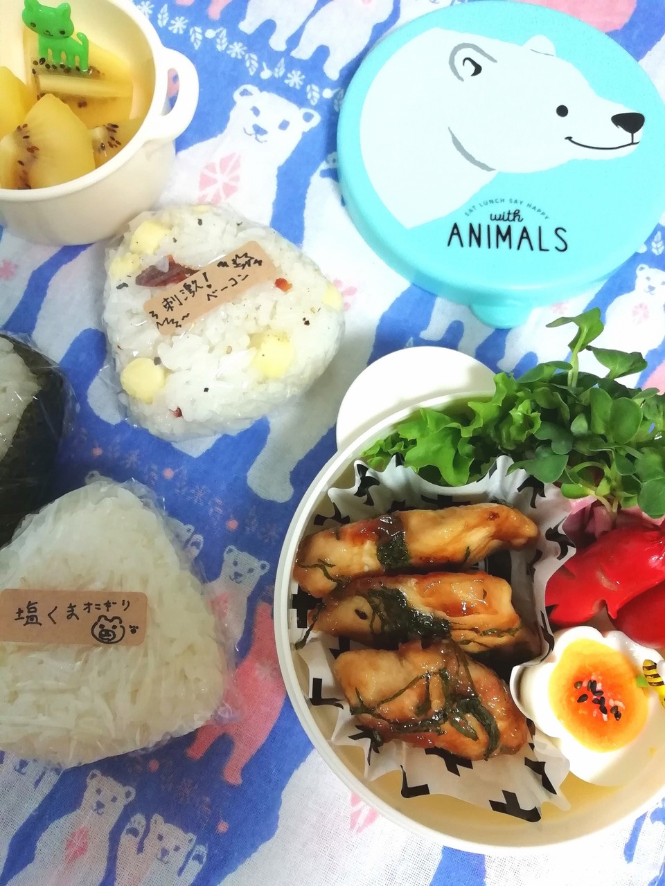 息子が「塩むすび」をリクエストしたので「白くま」とかけてみました-