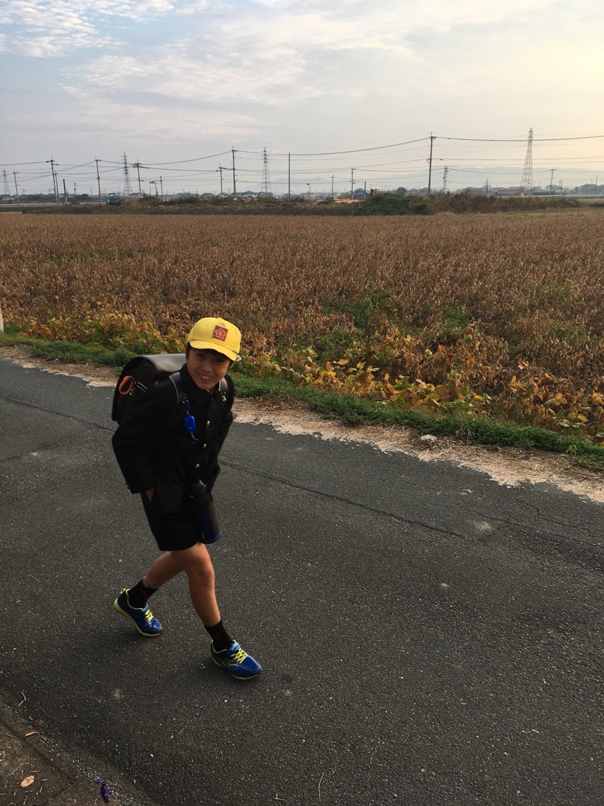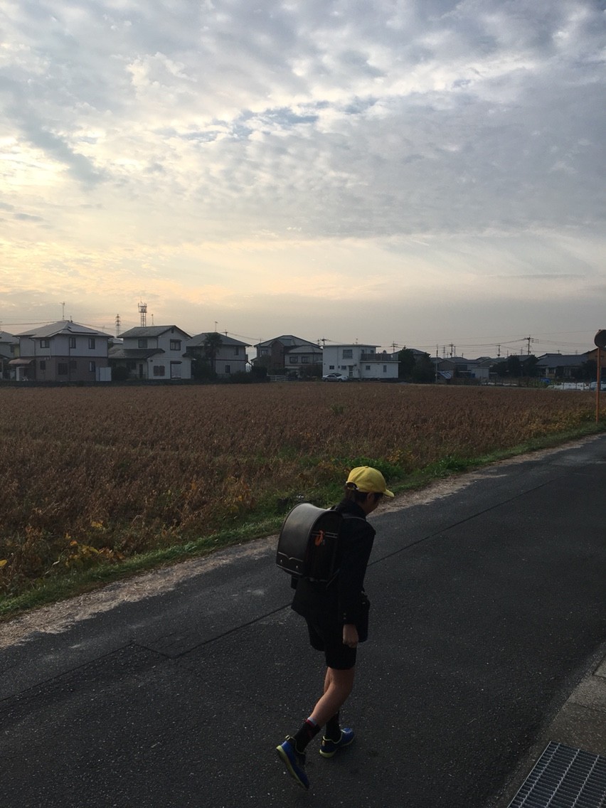 しばらく登校風景を撮影しない間に、前の畑は稲刈りを終了しましたよ。