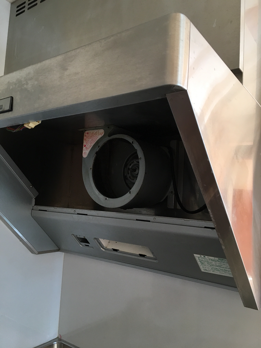 ドライバーで分解しなきゃだし、脚立に上り、油でギトギトの換気扇を触るってちょっと嫌な感じ。笑