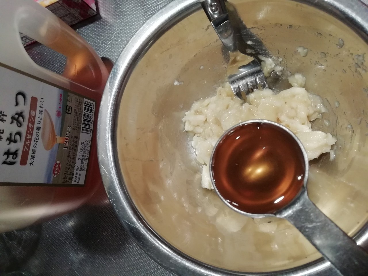 ホットケーキミックスを入れて混ぜます。