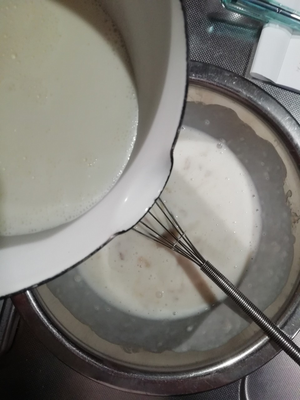 別のボウルに卵白を泡立てメレンゲを作ります。