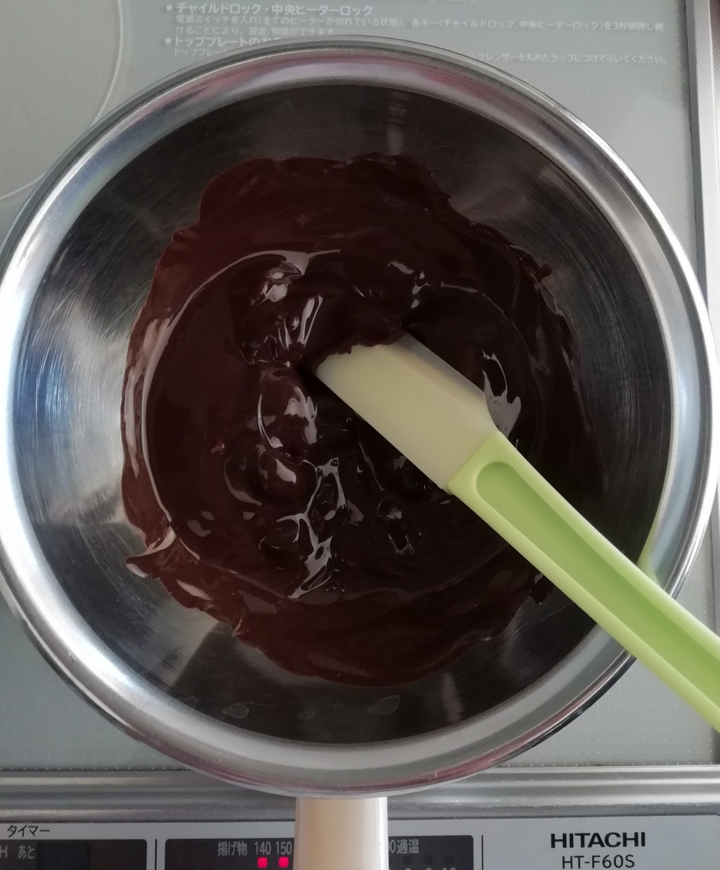 まずは刻んだ板チョコを湯煎にかけながら溶かします。