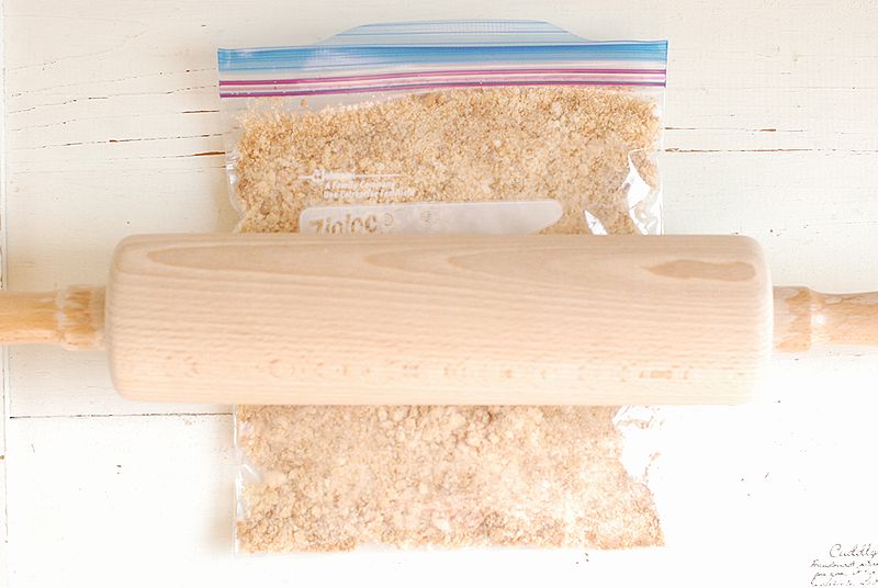 ボールにぬるま湯とインスタントコーヒーを入れてよく混ぜ、大きく割ったビスケットを入れてざっと混ぜます。