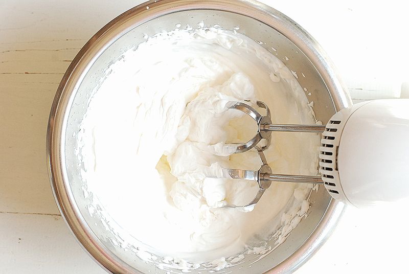 ボウルに生クリームと砂糖を入れ泡立て器で角がたつまで泡立てる