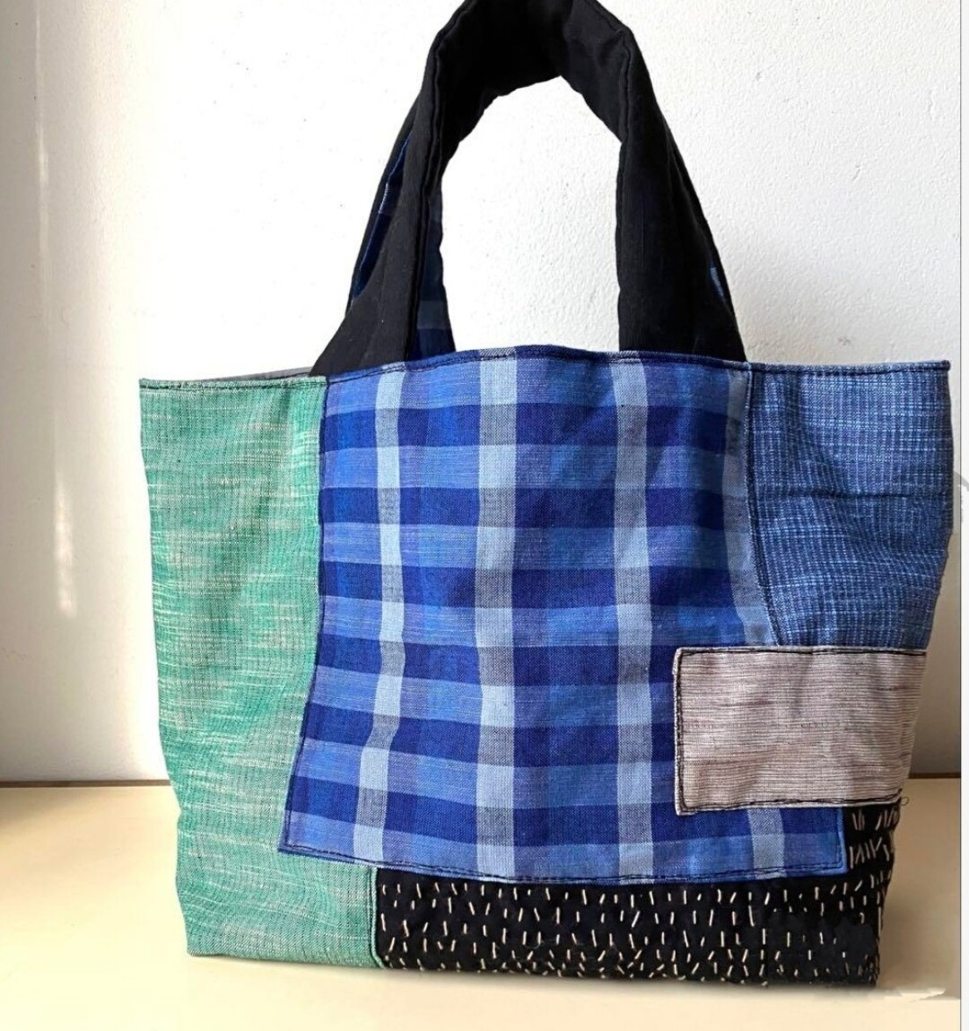 絣や古布を組み合わせて作られたハンドメイドの作品です。