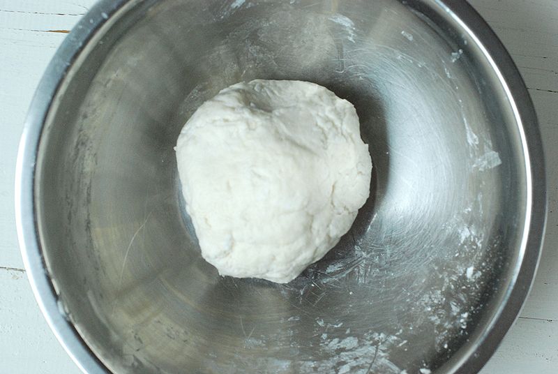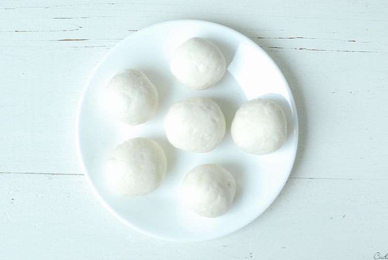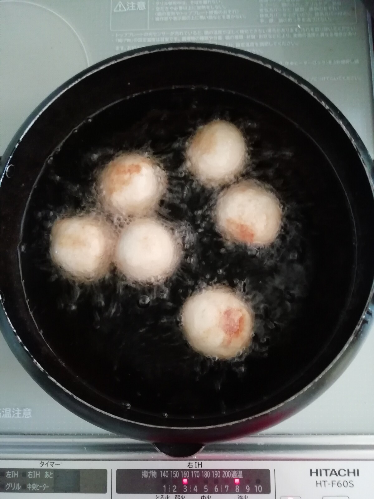 白玉粉は水を加えてこね、丸めて熱湯でゆでます。