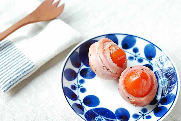 トマトのベーコン巻きは彩りも綺麗でお勧めです♫