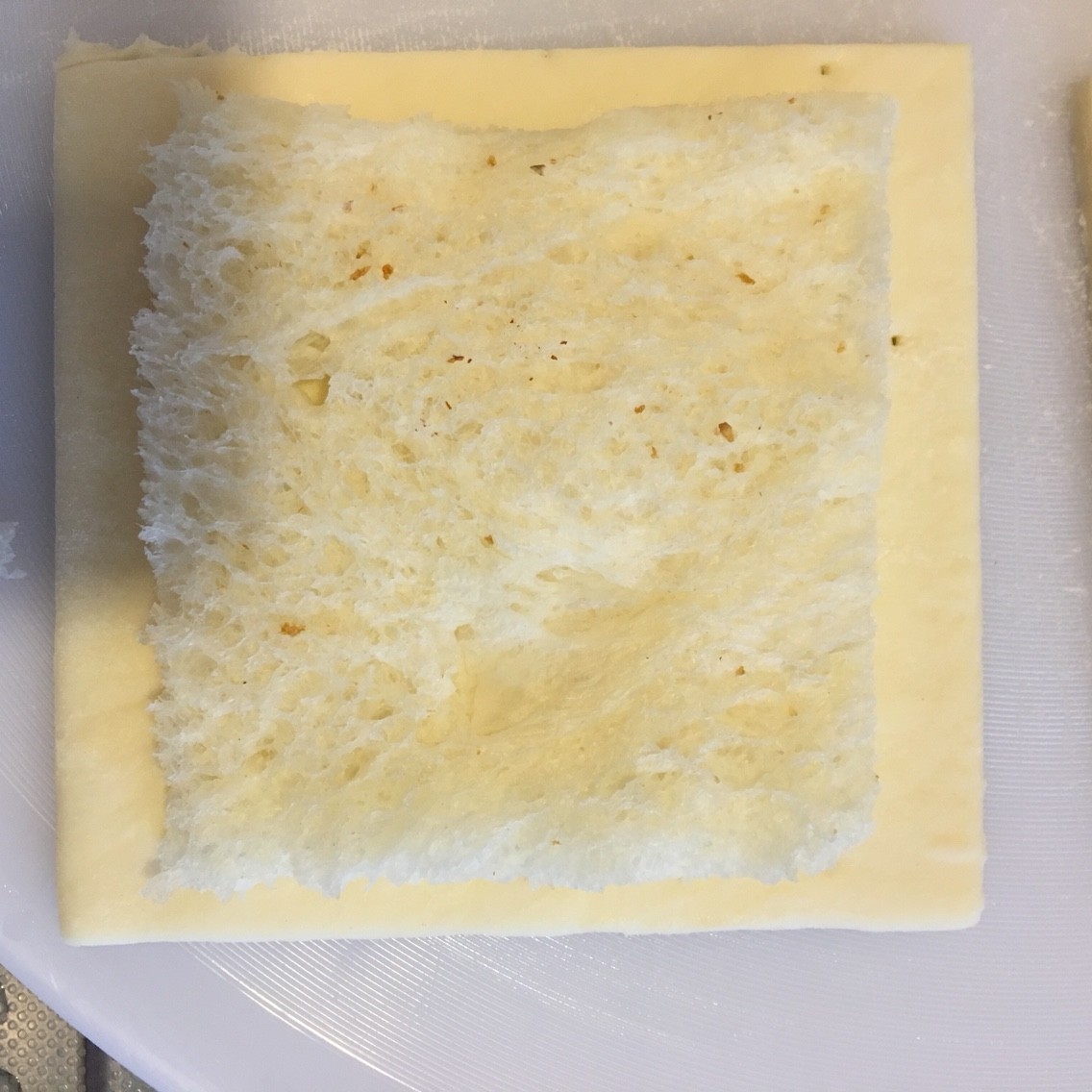 ここに食パンを一回り小さく切ったのを置きます。