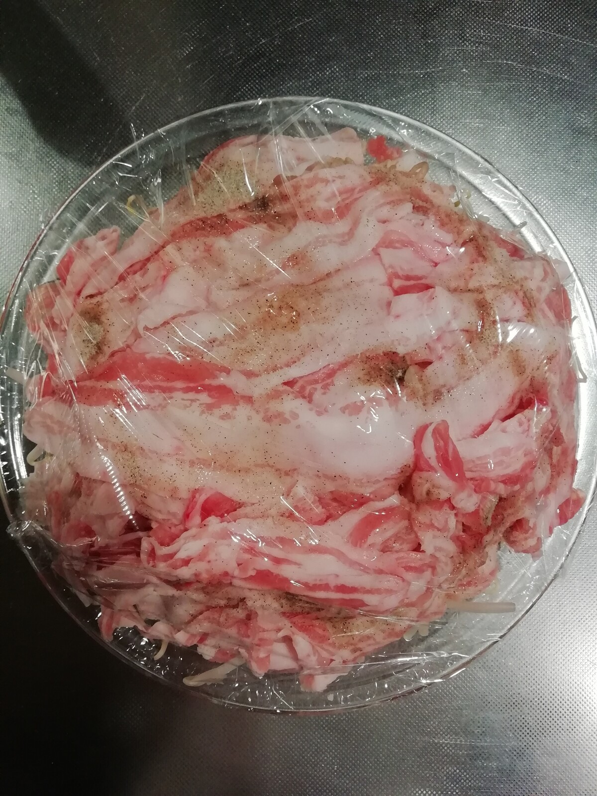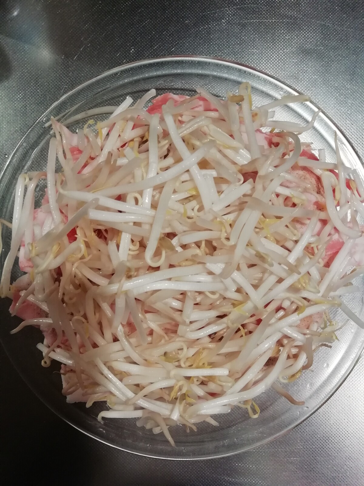 息子の愛する豚バラもやしのレンチン蒸しです!