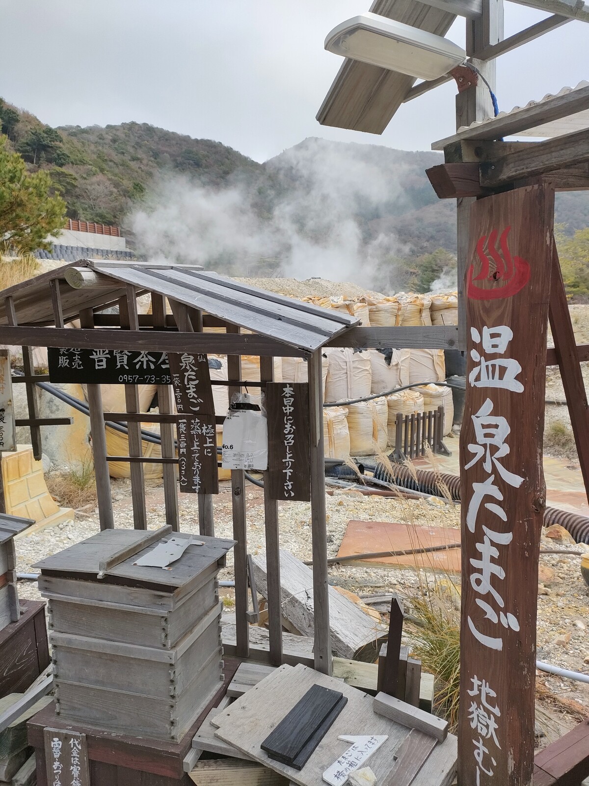 ホテルをチェックアウトした後は、隣の敷地にある「温泉たまご」を食べに行きました。