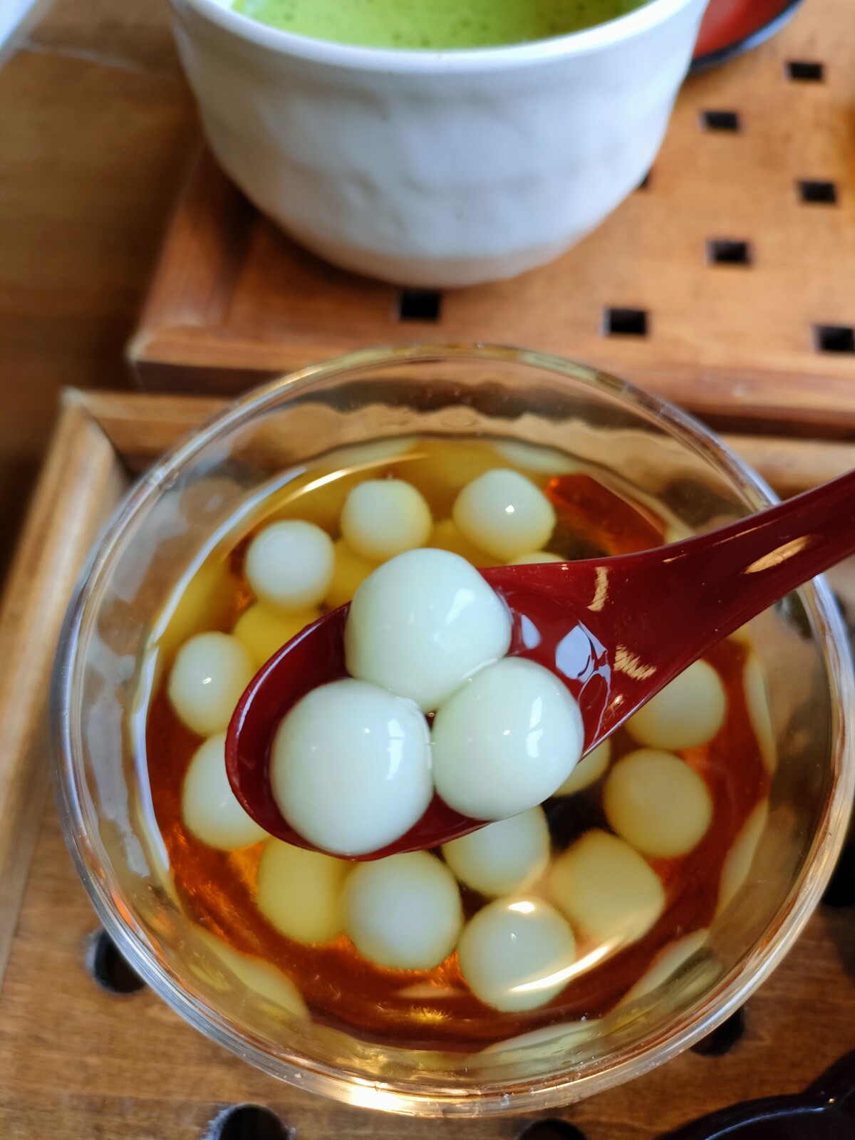 かんざらしは、もちもちした小さなお団子と、冷たい黒糖シロップの組み合わせが最高