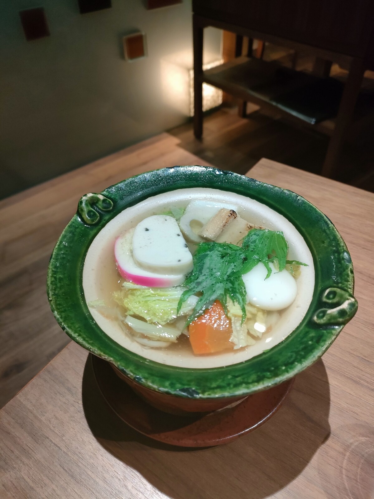 お野菜やおもち、焼きアナゴや鶏肉が入ってて、食べると体の中からポカポカあたたまる~