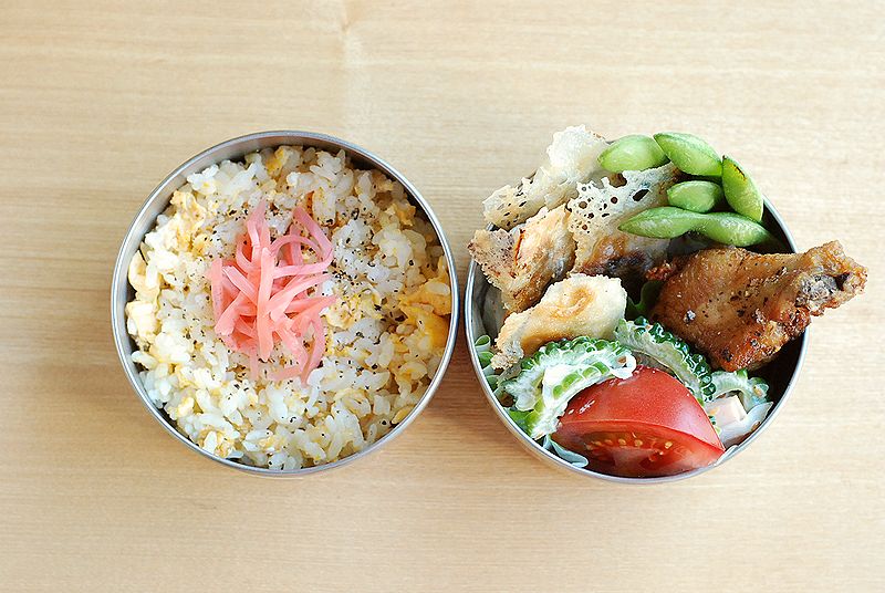 私がお弁当に餃子を入れるときは、決まって卵チャーハンとセットです。笑